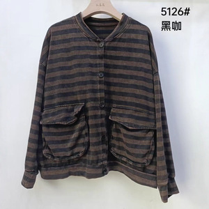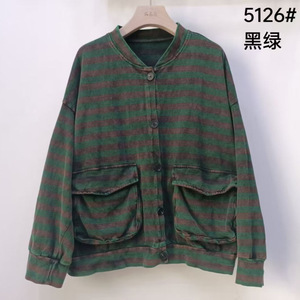 条纹短外套口袋2025秋季单排扣百搭休闲宽松长袖炒色开衫上衣女装