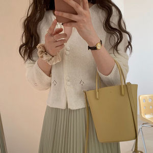 短款蓝色针织开衫日系复古毛衣外套女设计感别致配裙子气质上衣
