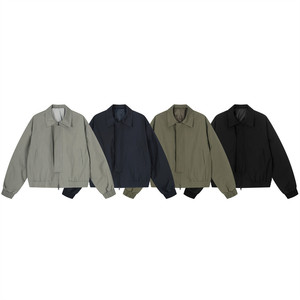 复古美式工装休闲夹克外套男士潮牌打褶皱设计感双向拉链飞行员秋