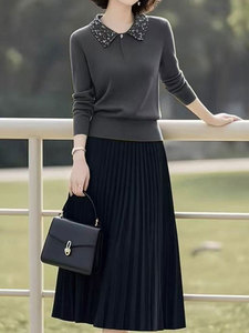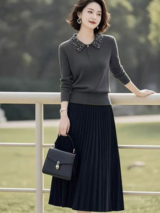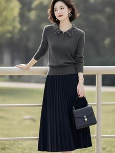 今年流行新款百搭2025秋季气质显瘦polo领针织上衣半身裙两件套