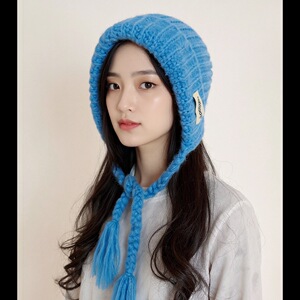 蓝色护耳巴拉克拉法帽子女冬季秋冬天新款大头围保暖针织毛线帽红