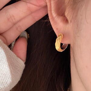 清冷感S925银针双色半圆耳环女气质轻奢分色微镶百搭灵动感耳饰