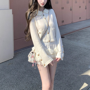 MENGXIANG ▏【软软豆乳】小翻领温柔贵气小香两色针织开衫上衣女