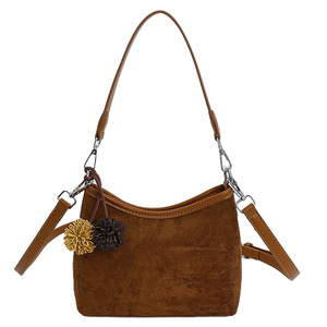 跨境复古麂皮绒手提腋下包女2025秋冬新款潮韩版单肩包磨砂斜挎包