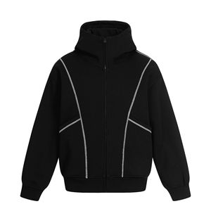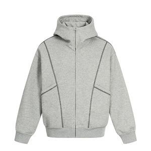 0269美式复古潮流男女款外套型明线解构设计男式宽松连帽开衫卫衣