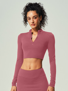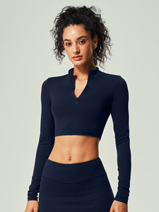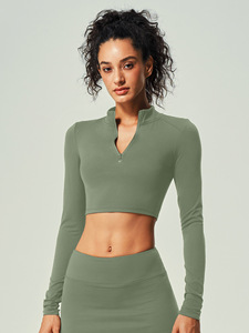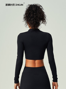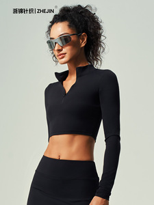 跨境欧美拉链速干紧身长袖瑜伽服运动速干休闲跑步显瘦健身上衣