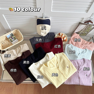 富欣娜刺绣针织衫宽松毛衣打底衫2025秋冬新款气质长袖上衣开衫女