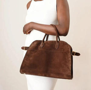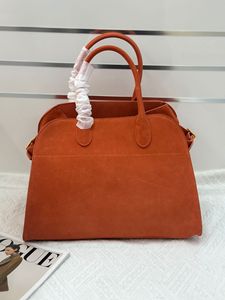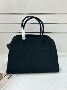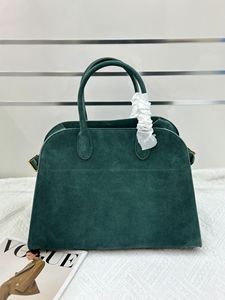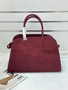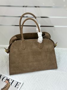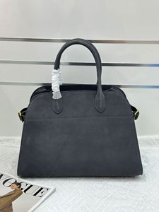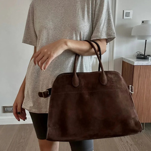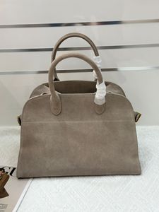 超火!Row真皮大容量通勤Margaux15手提包斜挎复古风潮麂皮托特包