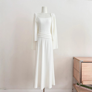 2025实拍秋季新款绵羊毛针织开衫+吊带背心+半身裙三件套