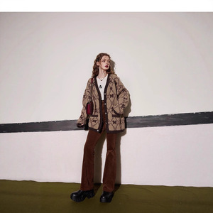 妖精的口袋长款毛衣开衫女2025冬季新款宽松仿马海毛美拉德上衣-