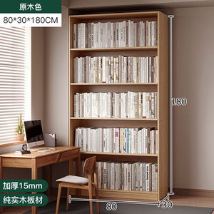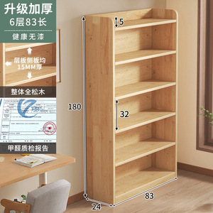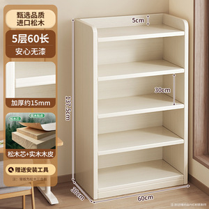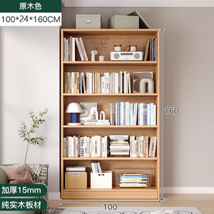 实木书架一体靠墙落地置物架家用儿童收纳柜储物柜子学生多层书柜