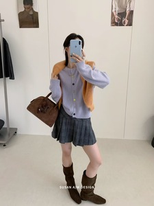 苏珊 针织开衫上衣2025年秋冬新款浣熊绒复古软糯针织衫毛衣25251