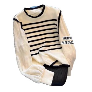 2025春秋新款设计感假两件拼接毛衣女小众别致休闲针织衫套头上衣