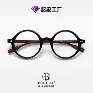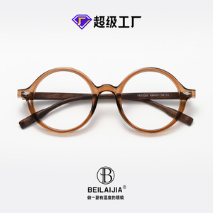日系复古书呆子椭圆框木纹眼镜架可配近视老花男女网红素颜平光镜