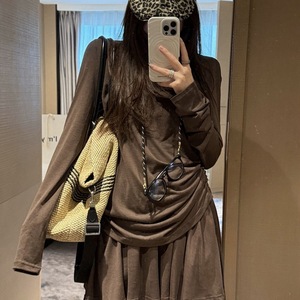 胖妹妹300斤露背长袖上衣+半身短裙两件套女秋季大码宽松时尚套装