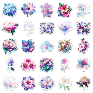 50张炫彩花朵闪膜镭射贴纸植物花卉炫酷创意跨境热卖防水电脑贴纸