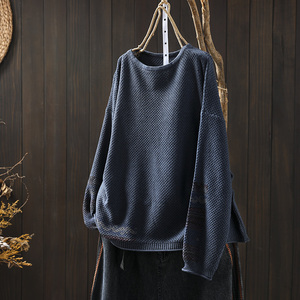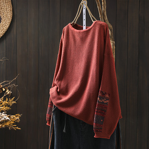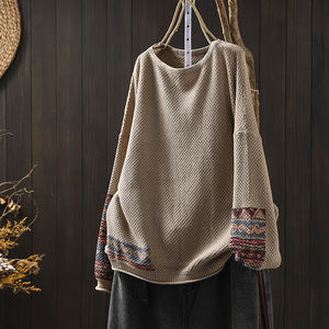 名族风印花棉线针织衫女宽松遮肉2025早秋新款复古套头长袖毛衣潮