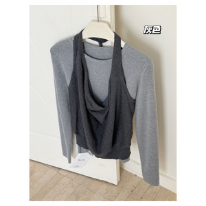 韩系慵懒风穿搭女25秋季新款设计感小众两件吊带背心上衣两件套装