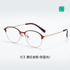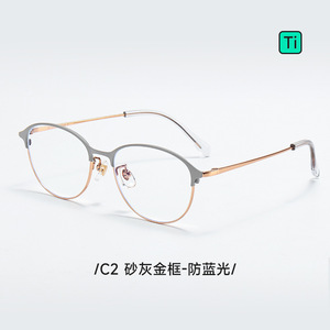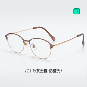 复古超轻钛架眉毛框眼镜女高智感 方圆脸显瘦20085可配近视度数男