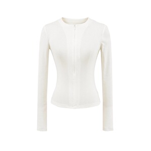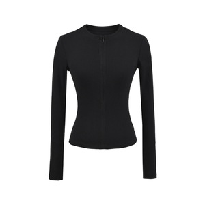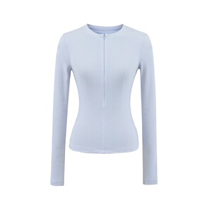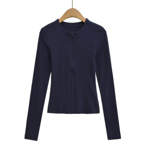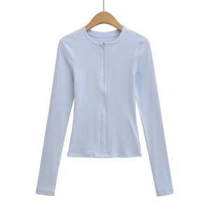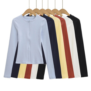 基础款圆领螺纹隐形半拉链长袖T恤女秋季新款修身运动打底上衣