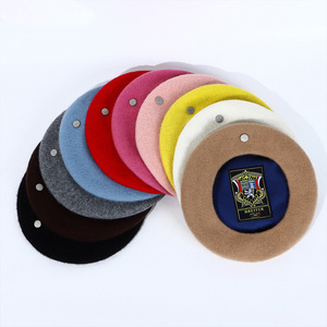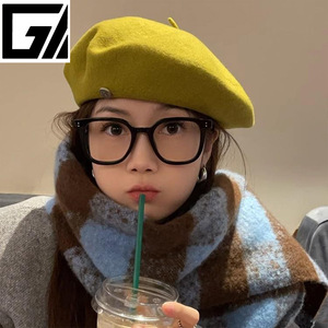 秋冬款纯色羊毛贝雷帽韩版新款小银标南瓜帽休闲百搭显脸小画家帽