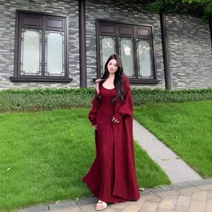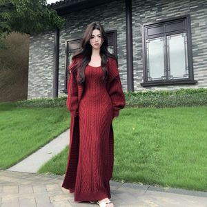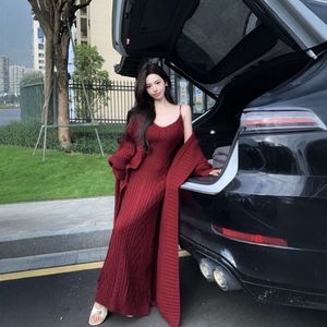 秋冬高级感长款针织吊带连衣裙两件套温柔慵懒风毛衣开衫松弛感厚