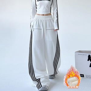 白色街头运动休闲裤女2025秋季新款侧条纹宽松阔腿裤慵懒运动裤子