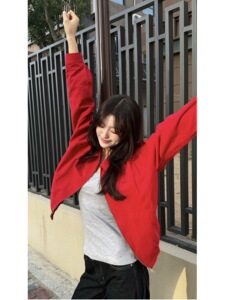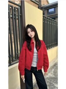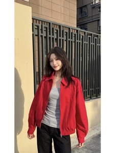 红色哈灵顿外套女春秋2025新款美式复古基础通勤男女款百搭夹克潮