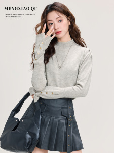 睛雅~灰色半高领针织打底衫女装秋季高级感气质毛衣内搭上衣显瘦