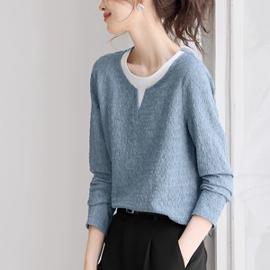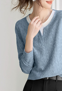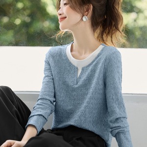 质感拼接长袖2025秋季新款休闲圆领撞色波浪肌理上衣T恤