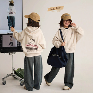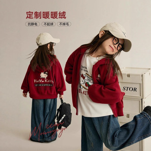 091102秋冬绒保暖连帽开衫外套儿童韩版开衫可爱KT上衣