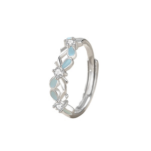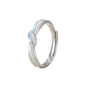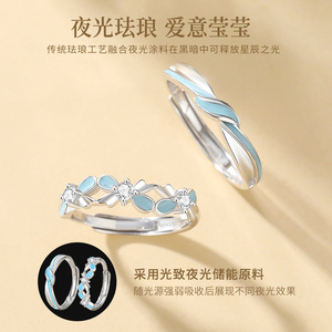 蒂奇亚原创蝴蝶结情侣戒指S925纯银小众设计高级感珐琅夜光开口戒