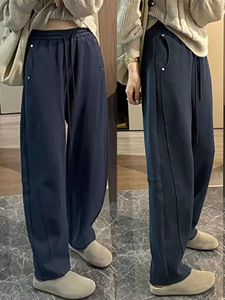 藏青色弯刀卫裤女春秋胖mm大码休闲显瘦哈伦直筒宽松运动裤小个子