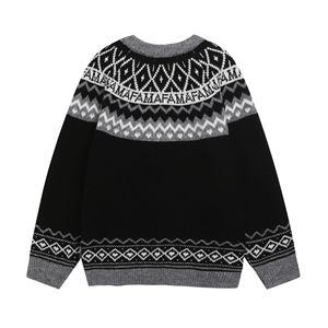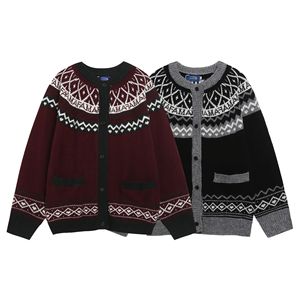 日系复古提花圆领开衫毛衣男女秋冬新款宽松百搭慵懒风针织衫外套