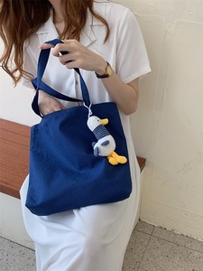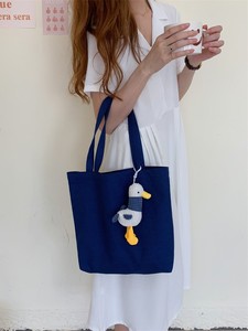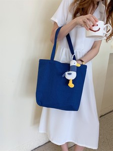 06292 大容量文艺复古单肩包纯色简约手拎购物袋学生上课帆布包