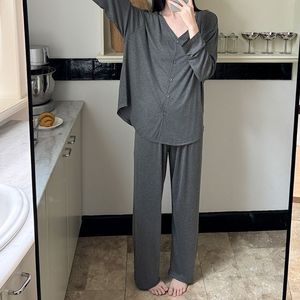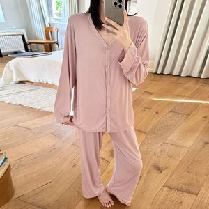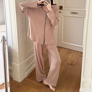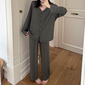 人棉睡衣女款春秋季韩系慵懒风简约开衫长袖两件套装家居服可外穿