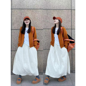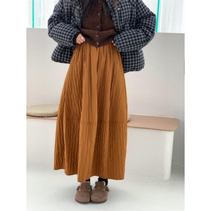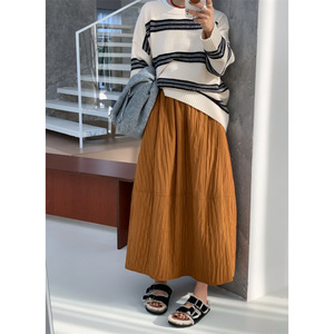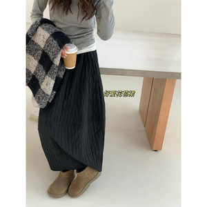 肌理感立体花苞裙氛围显瘦高腰百搭绗线中长半身裙秋冬