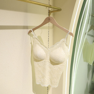 2025秋冬法式蕾丝带胸垫女内搭磨毛无痕吊带百搭美背外穿背心女