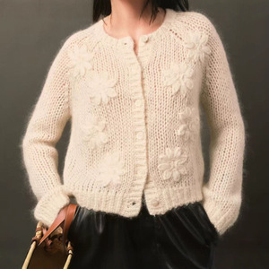 25秋冬法式复古立体绣花温柔风毛衣女甜美软糯针织外套