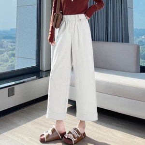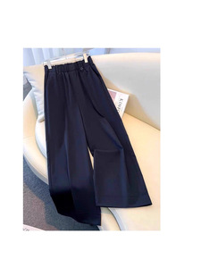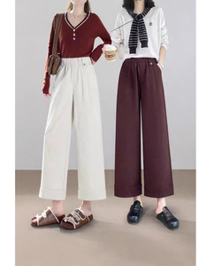 茶白色直筒裤女松紧高腰阔腿女宽松直筒九分垂感花苞腰休闲裤7235
