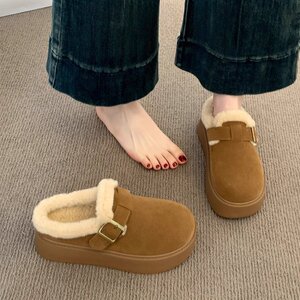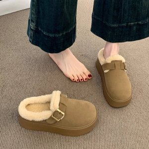 厚底加绒勃肯鞋女鞋子2025新款冬季保暖雪地靴女棉鞋乐福鞋毛毛鞋