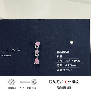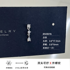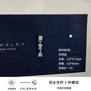 316L医用钛钢水滴吊坠耳骨钉爆闪锆石养耳洞耳钉小众设计感耳饰