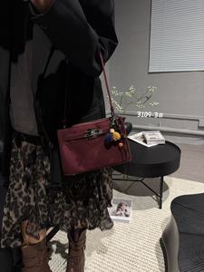 高级感磨砂真皮凯莉包包女2025秋冬新款时尚百搭外贸单肩斜挎小包