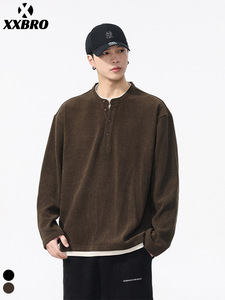 xxbro男装#秋冬新款百搭休闲假2件痞帅潮牌高街亨利领长袖体恤男