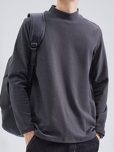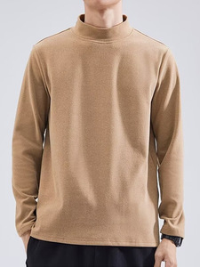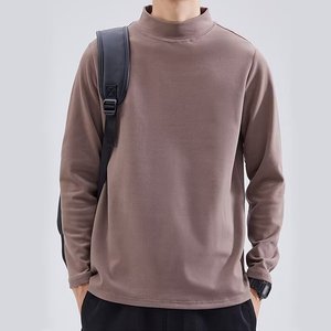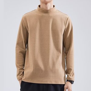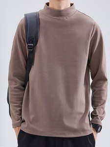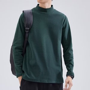 男士德绒纯色一体T双面百搭保暖内衣内搭打底衫半高领长袖t恤秋衣