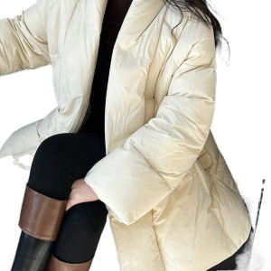 设计感收腰羽绒服女中长款冬季新款韩版宽松显瘦白鸭绒保暖外套