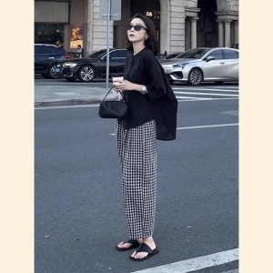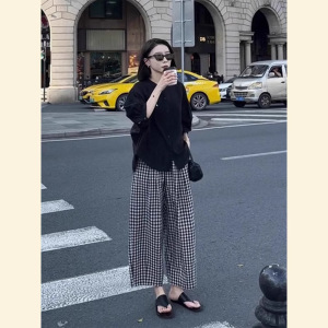 夏季2025新款今年流行时尚欧货漂亮黑色小香风衬衫阔腿裤两件套装