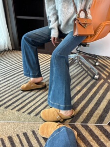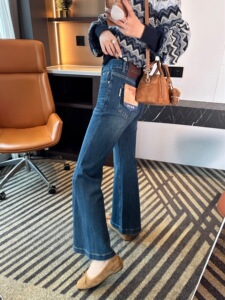 腿精建模裤!~双版本斜裁微喇叭牛仔裤女秋季新高腰弹力显瘦裤子