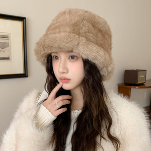 冬季百搭加厚毛绒盆帽帽户外出行防风保暖帽子女休闲显脸小水桶帽