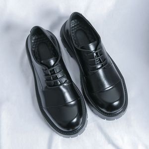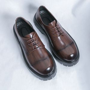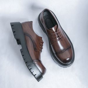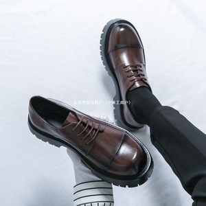 韩版男鞋大头皮鞋潮流英伦男士百搭黑棕色青年时尚厚底增高德比鞋
